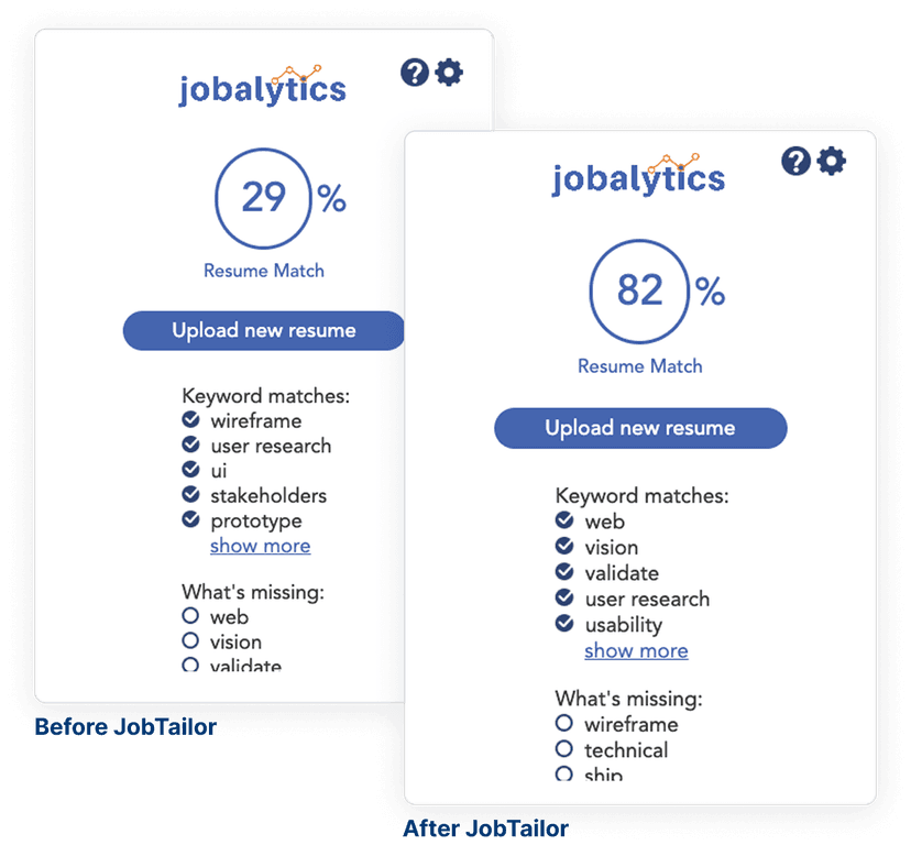 "My resume went from a 30% to 80% match instantly! JobTailor better aligned my experiences perfectly to meet the job's requirements."